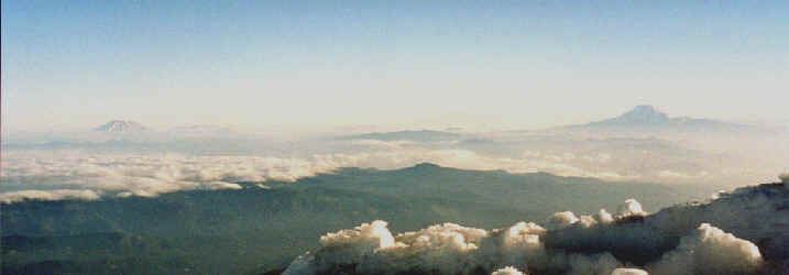 north. Left to right are Mt. St. Helens, Mt. Rainier and Mt. Adams