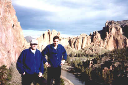 Before we climbed Mt. Hood in February 1997 we were able to spend some time at Smith Rock State Park in Oregon to do some camping and rock climbing. We camped above the Crooked River and had an excellent view of the southern Cascade. Fortunately, when we were there, the Hale-Bopp comet was in the northern sky and we got a spectacular view. Garrett cooking dinner